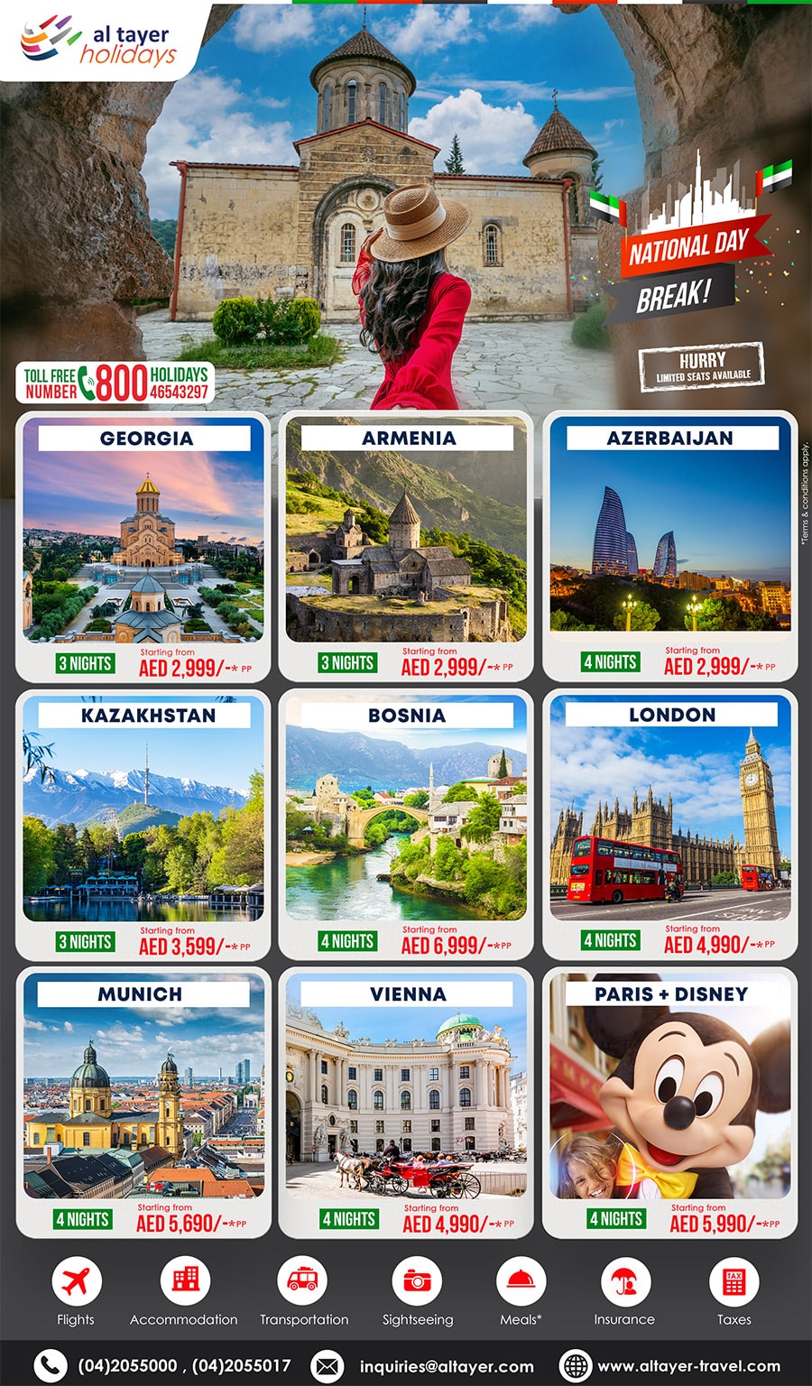 ✨ Celebrate the UAE National Day with unforgettable holiday experiences! From relaxing staycations to exciting getaways, Al Tayer Holidays brings you special packages, exclusive deals, and handpicked destinations to make your long weekend truly memorable.