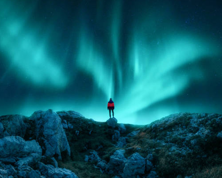 The first leg of our journey is travelling along the south coast toward Kirkjubæjarklaustur. We will visit sights including the Seljalandsfoss waterfall—the only of its kind in Iceland where you can walk behind the roaring cascade on a footpath, followed by the magnificent 60-metre free-falling Skógafoss waterfall. From there, the journey takes you past the beautiful Eyjafjöll mountain range, including Eyjafjallajökull, a volcano completely covered by an ice cap, towards the volcanic black sand beaches near the village of Vík í Mýrdal. One of the highlights is visiting Reynisfjara, one of the most famous beaches in Iceland. You can also get some great photos with the unique Reynisdrangar basalt columns jutting out of the ocean. Next, you will travel to your carefully selected charming boutique hotel, situated far away from the city lights to give you the best chance of seeing the northern lights.