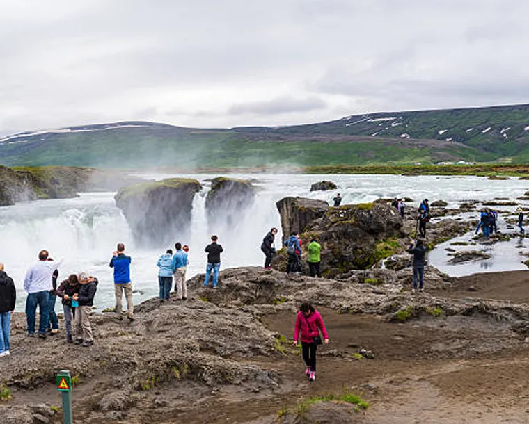 Today our main highlight of the Great North. Leaving the Húsavík area today, our first highlight of the journey is Goðafoss, (the waterfall of the Gods), one of the most picturesque waterfalls in Iceland. We will then make our way to the charming town of Akureyri, where we will take a stroll in the heart of the city centre. You will have some leisure time to explore the town. The tour continues to drive around Tröllaskagi, where you can enjoy fantastic views of beautiful mountains, cliffs and fjords. We will make a stop in the scenic Siglufjörður, which was once the centre of Iceland’s herring fleet. Today, it still boasts all the charms of a small fishing village with its colourful old buildings, lively harbour and mountainous fjord setting. Here, we will visit the Herring Era Museum and taste some local treats. The journey continues to the tranquil farmlands of Skagafjörður.