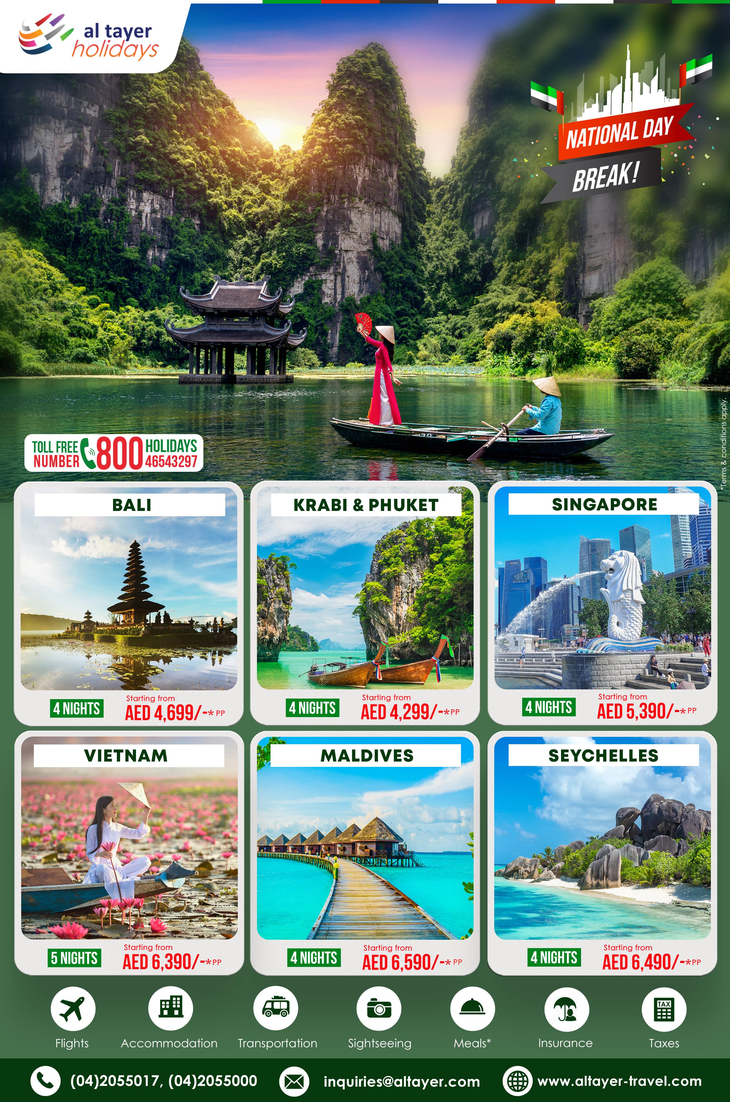 ✨ Celebrate the UAE National Day with unforgettable holiday experiences! From relaxing staycations to exciting getaways, Al Tayer Holidays brings you special packages, exclusive deals, and handpicked destinations to make your long weekend truly memorable.