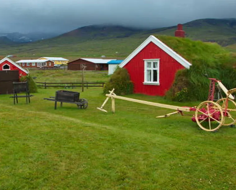 Today our main highlight of the Great North. Leaving the Húsavík area today, our first highlight of the journey is Goðafoss, (the waterfall of the Gods), one of the most picturesque waterfalls in Iceland. We will then make our way to the charming town of Akureyri, where we will take a stroll in the heart of the city centre. You will have some leisure time to explore the town. The tour continues to drive around Tröllaskagi, where you can enjoy fantastic views of beautiful mountains, cliffs and fjords. We will make a stop in the scenic Siglufjörður, which was once the centre of Iceland’s herring fleet. Today, it still boasts all the charms of a small fishing village with its colourful old buildings, lively harbour and mountainous fjord setting. Here, we will visit the Herring Era Museum and taste some local treats. The journey continues to the tranquil farmlands of Skagafjörður.