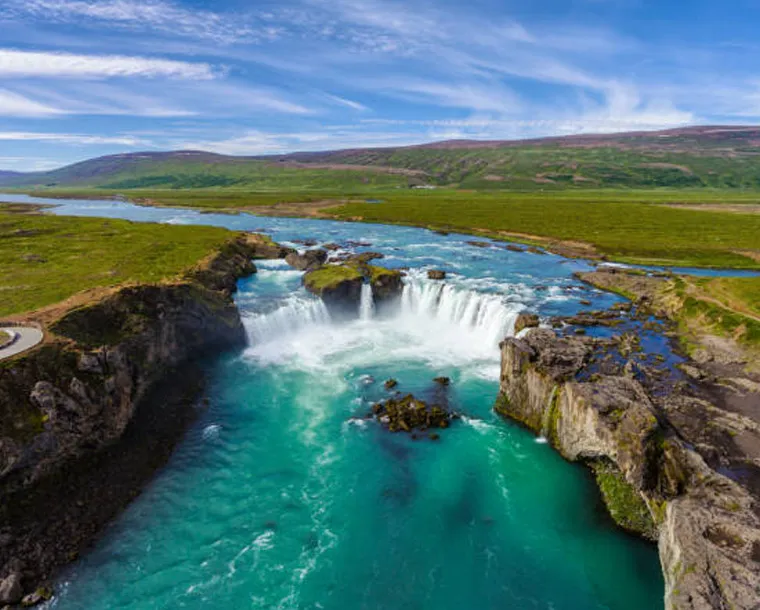 Today we will explore the volcanic landscape of Lake Mývatn where we will spend the first half of the day visiting sights such as Dimmuborgir, a magnificent lava landscape with extraordinary formations, columns, caves. Námaskarð is another sight you will visit. The area draws many visitors to its Martian-like terrain. On the way to Skagafjörður, we will visit the mighty Goðafoss, (The Waterfall of the Gods), is among the most beautiful falls in the country. Though it is not very tall, the cascade is divided into two horseshoe-shaped falls, making it unique among Icelandic waterfalls. Not far above the falls the river Skjálfandafljót divides in two, forming the island Hrútey. According to the Sagas, Þorgeir Ljósvetningagoði threw his statues of pagan gods into the falls upon deciding that Iceland would officially convert to Christianity in the year 1000. Heading our way to the charming town of Akureyri, where we will take a stroll through the town centre that is always full of life during the summer months. Then we will head for our next destination in the tranquil farmlands of Skagafjörður, where you will enjoy a farewell dinner with the group.